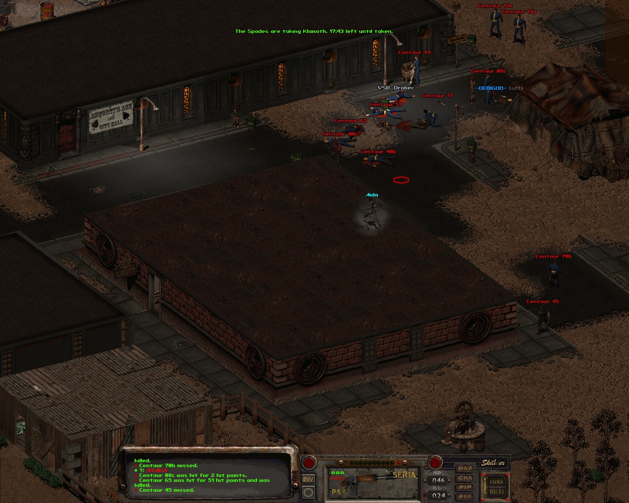 Od naszego rosyjskiego przyjaciela dostaliśmy informację, że Centaury szykują się na atak kilku miast na pustkowiu, m.in. Redding. Zrobiliśmy pełną mobilizację LAW i wyruszyliśmy do Redding. Po długiej wymianie ognia i lejącej się rzece trupów Centaurów Aida została sama na polu bitwy. |
