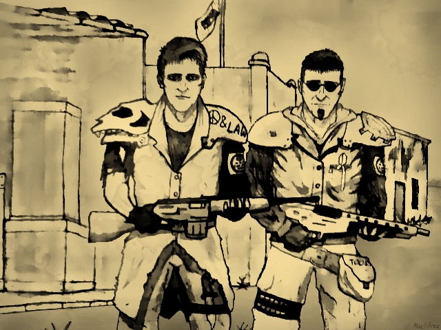 Przeróbka szkicu MACabry. Postaci na rysunku to Mashcar i Majer.