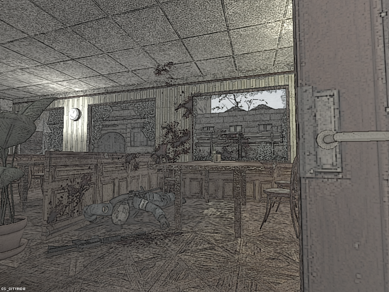 Przerobiony screenshot z mojej mapy (cs_cityride) do gry Counter-Strike: Source na styl komiksowy.