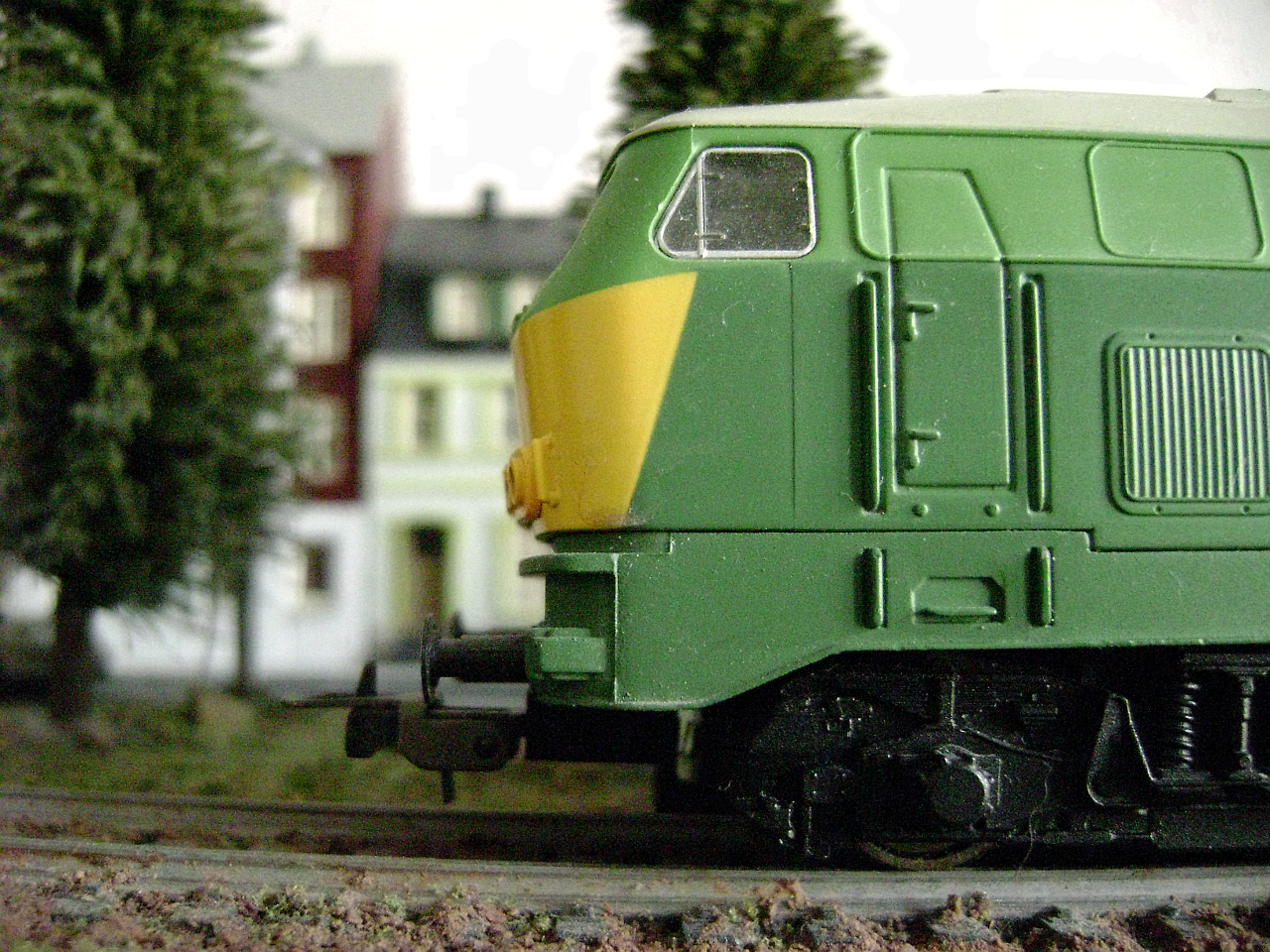 Zdjęcie modelu lokomotywy SU29-012 na mojej makiecie miasta.