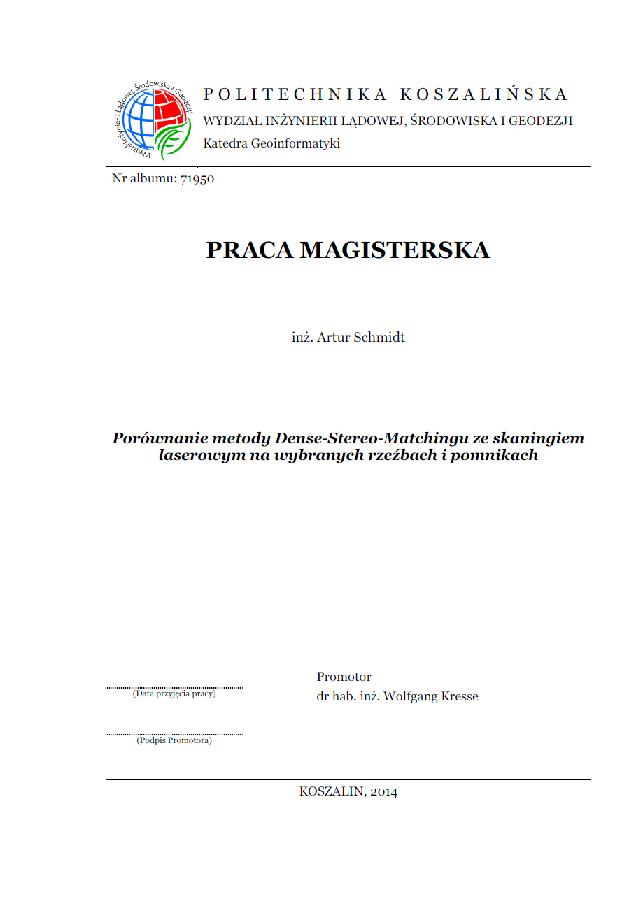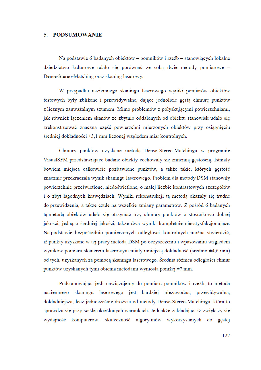 | Porównanie metody Dense-Stereo-Matchingu ze skaningiem laserowym na wybranych rzeźbach i pomnikach SPRZEDAŻ - Literatura naukowa